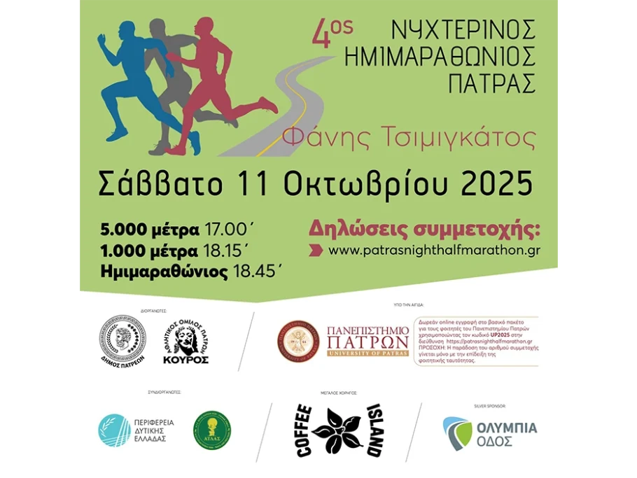 4ος Νυχτερινός Ημι-μαραθώνιος Πάτρας “Φάνης Τσιμιγκάτος” 11-Οκτωβρίου-2025, Live Results